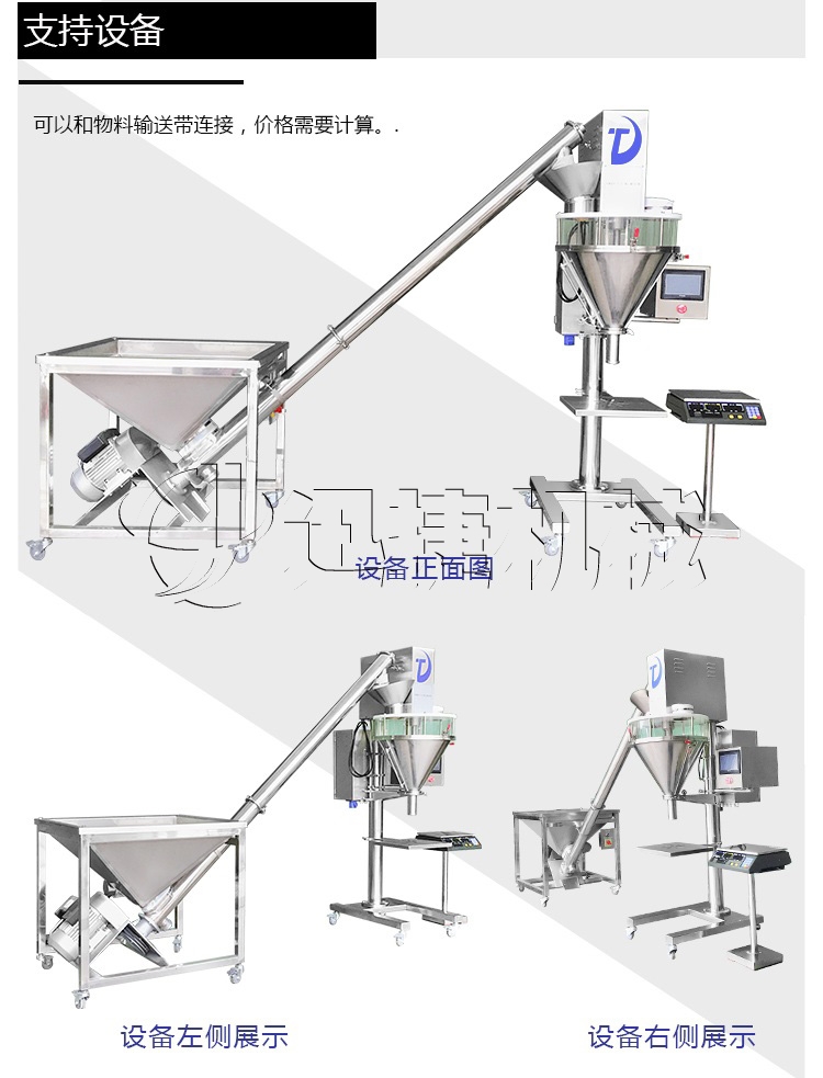該定量包裝機主要適用于各種袋裝計量的粉類產品,例如鋁箔袋、塑料袋、紙袋、布袋、廣口瓶等類產品進行合理安全的定量包裝,是農藥、獸藥、預混料、添加劑、奶粉、淀粉、調味品、酶制劑、飼料等粉劑狀產品定量包裝的選擇,而且與物料接觸部件采用優質不銹鋼材料制作,易于清理清洗,對物料的物理、化學性能無影響,更加方便生產企業的使用。